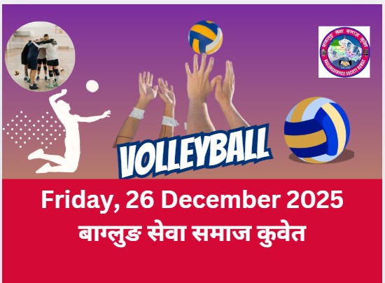 बाग्लुङ सेवा समाज कुवेतद्वारा आगामी २६ डिसेम्बर २०२५ शुक्र्बारको दिन खुल्ला पुरुष भलिबल प्रतियोगिता आयोजना गर्ने भएको छ।